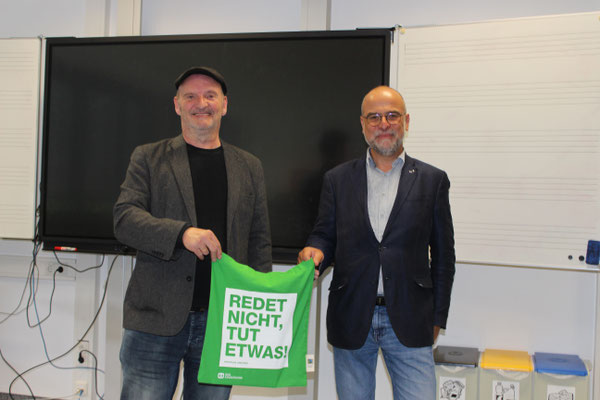 Links im Bild Natalie Imhof von der Schülervertretung, Herr Yurtsever, Guido Raith, Schulleiter Andreas Acker sowie Konrektor und stellvertretender Schulleiter Markus Sahm.