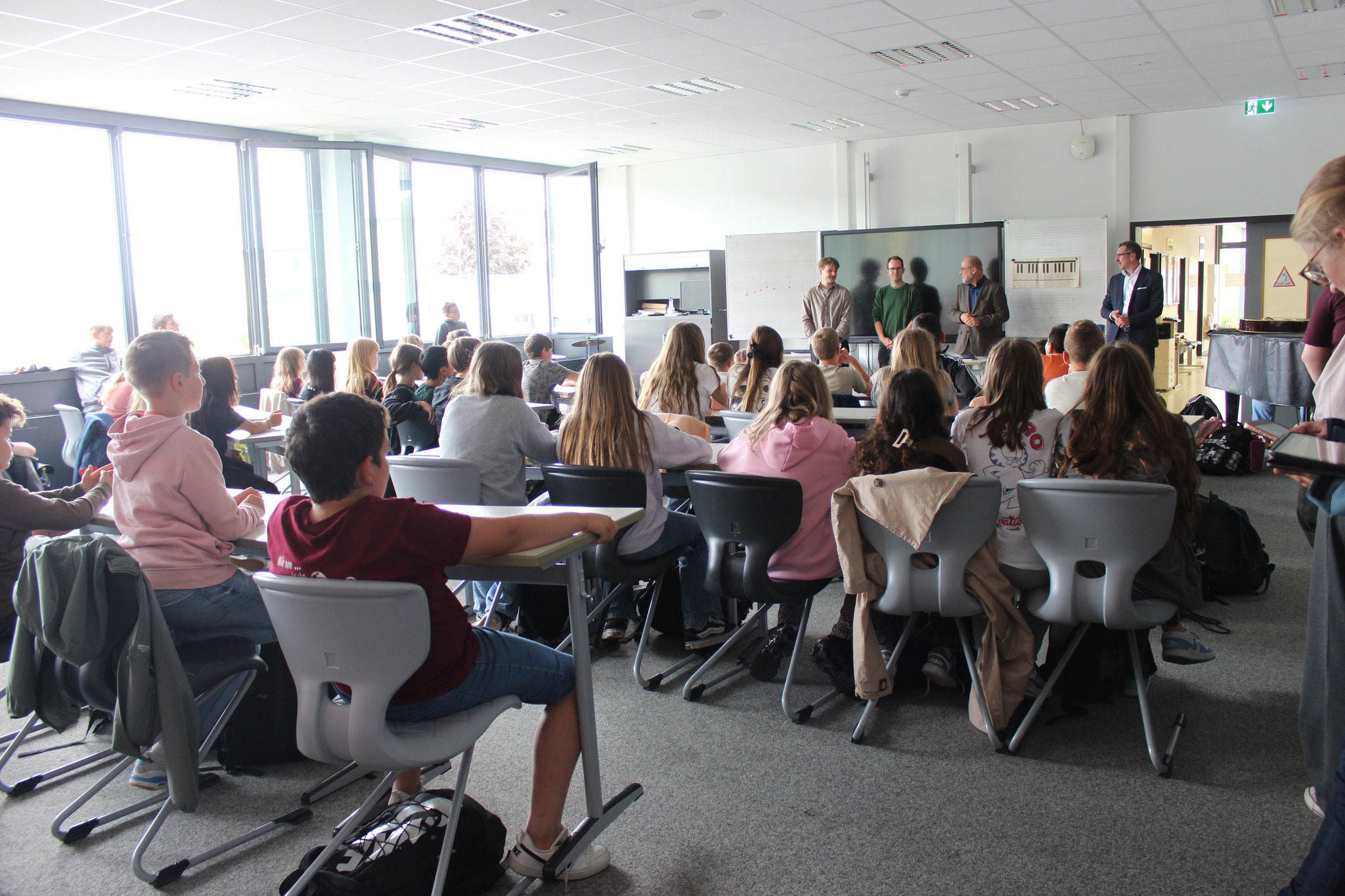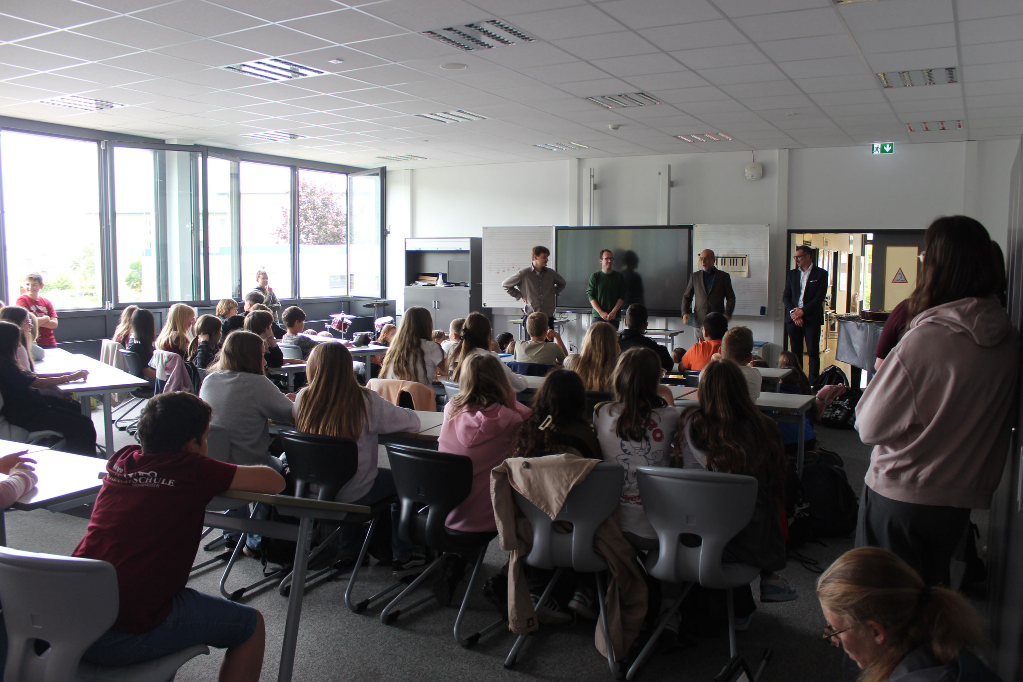 Zur Auftaktveranstaltung waren die teilnehmenden Klassen aus der 5. und 6. Jahrgangsstufe sowie die 9H anwesend. Nach den Begrüßungen durch Herrn Acker und Herrn Huber vom staatlichen Schulamt wurden das Prinzip und die Workshops des „Digital Trucks“ vorgestellt.