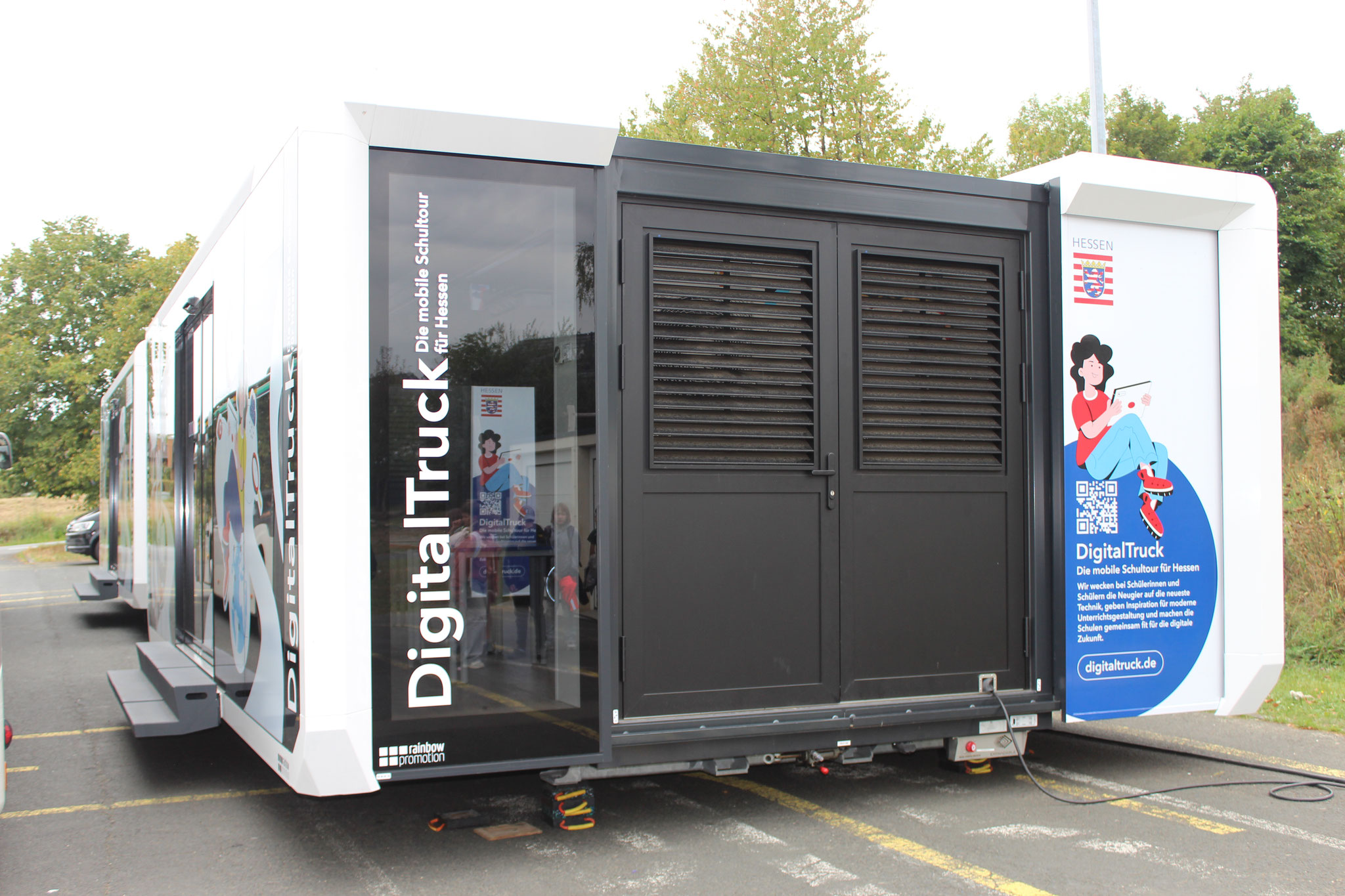 Vom 08.-12.09.2025 steht der „Digital Truck“ auf dem Busparkplatz der Goldbachschule. In dieser Zeit finden sowohl vormittags als auch nachmittags verschiedene Workshops statt, bei denen die Neugier auf Technik geweckt werden soll, aber auch der verantwortungsvolle Umgang mit digitalen Medien erprobt werden soll. Dies geschieht zum Beispiel beim Codieren oder der Anwendung von KI.