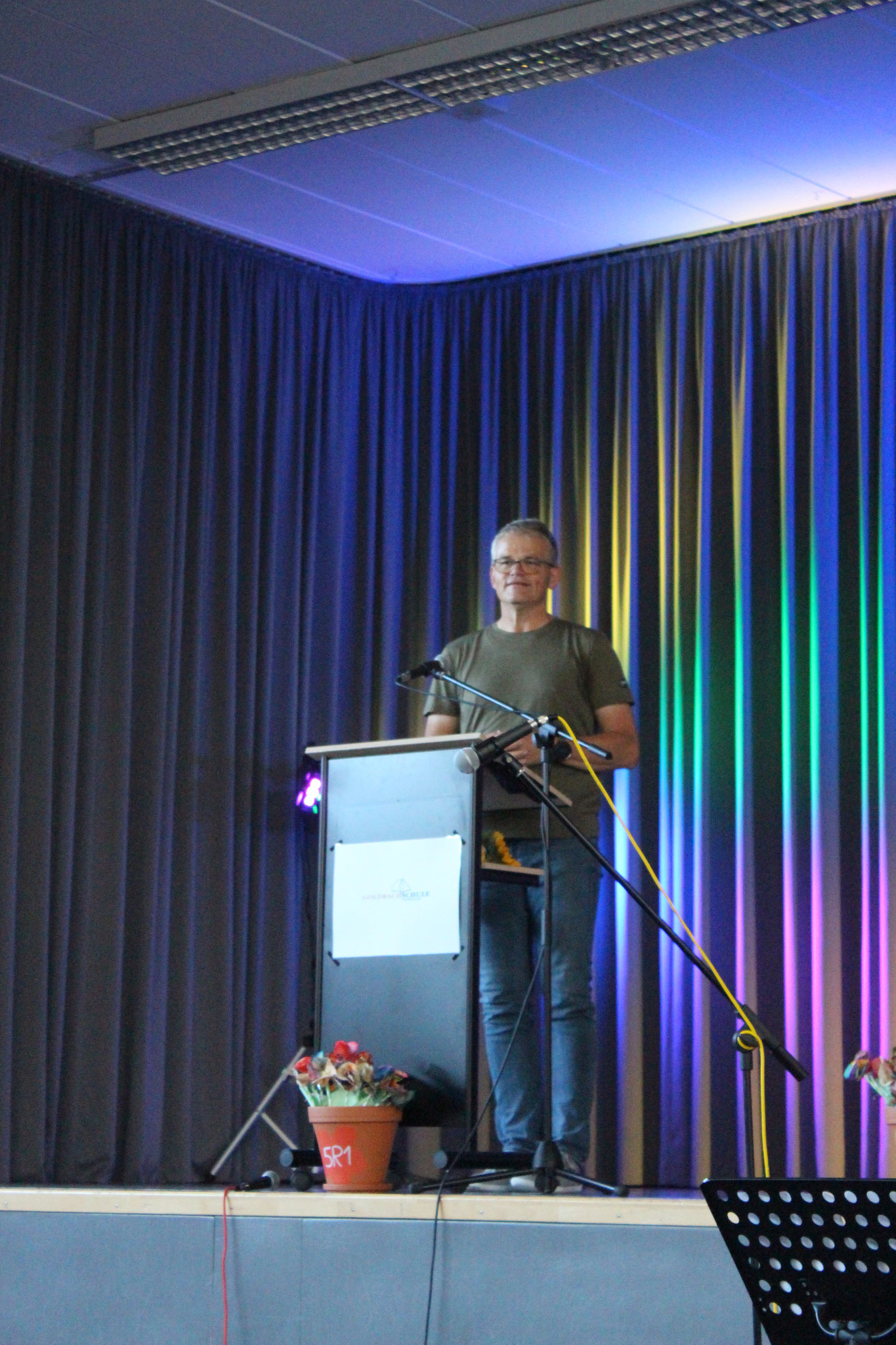 Am Dienstag, den 21.08.2025, fand die Einschulung der neuen Fünftklässler an der Goldbachschule Frohnhausen statt. Die 56 Schüler und ihre Familien wurden dazu eingeladen, vor den Einschulungs-feierlichkeiten an einer Andacht unter dem Thema „Wir sind Kinder in Gottes Garten“ teilzunehmen, die von Frau Laband und Pastor Frank Kemper gestaltet wurde. Die beiden sprachen den Anwesenden zu, dass es verschiedene Blumen mit unterschiedlichen Eigenschaften gibt, aber letztlich jede Blume, die als Bild für uns Menschen und im Besonderen für die Schüler steht, von Gott geliebt wird. Herr Kemper betonte, dass der Mensch oftmals auf die Äußerlichkeiten schaut und sich an der Schönheit freut, Gott aber das Herz sieht und manchmal mehr in uns Menschen steckt, als zunächst gedacht.