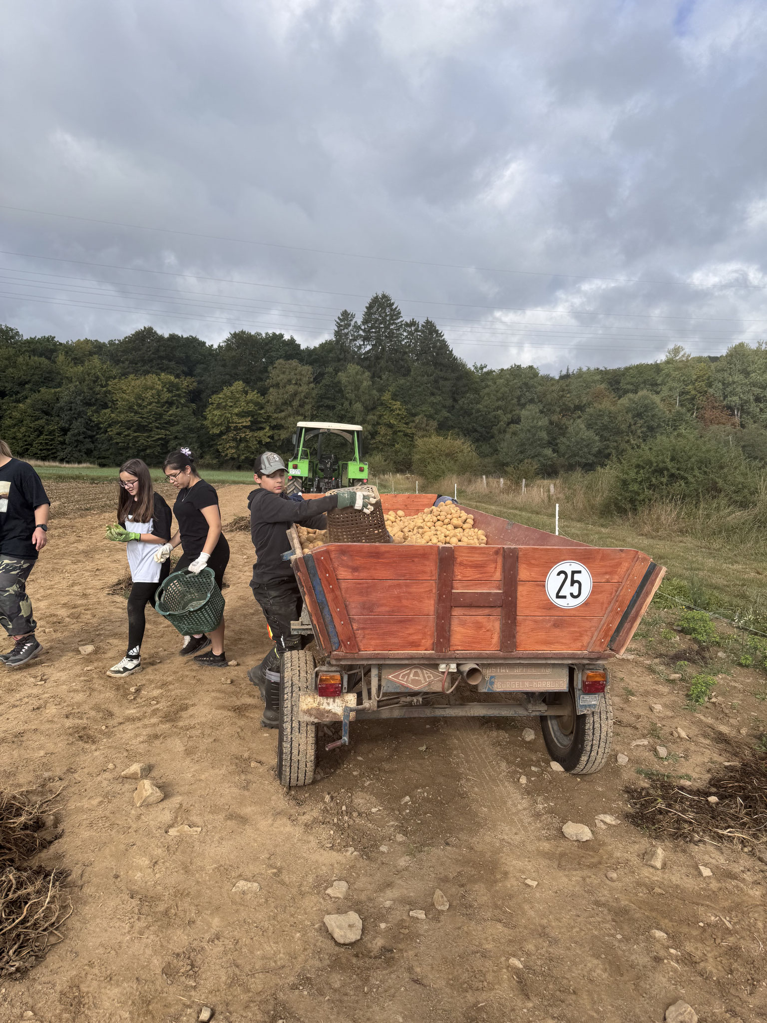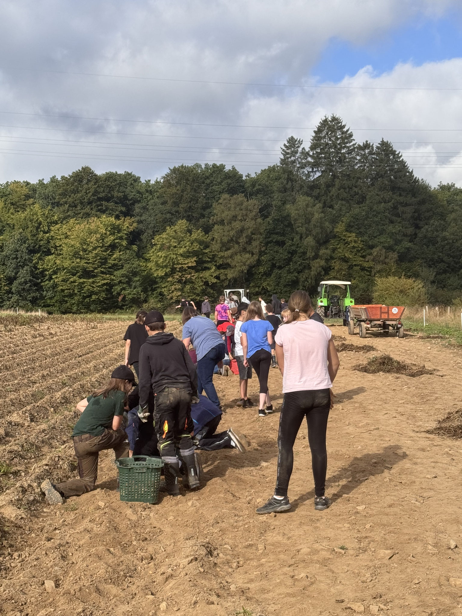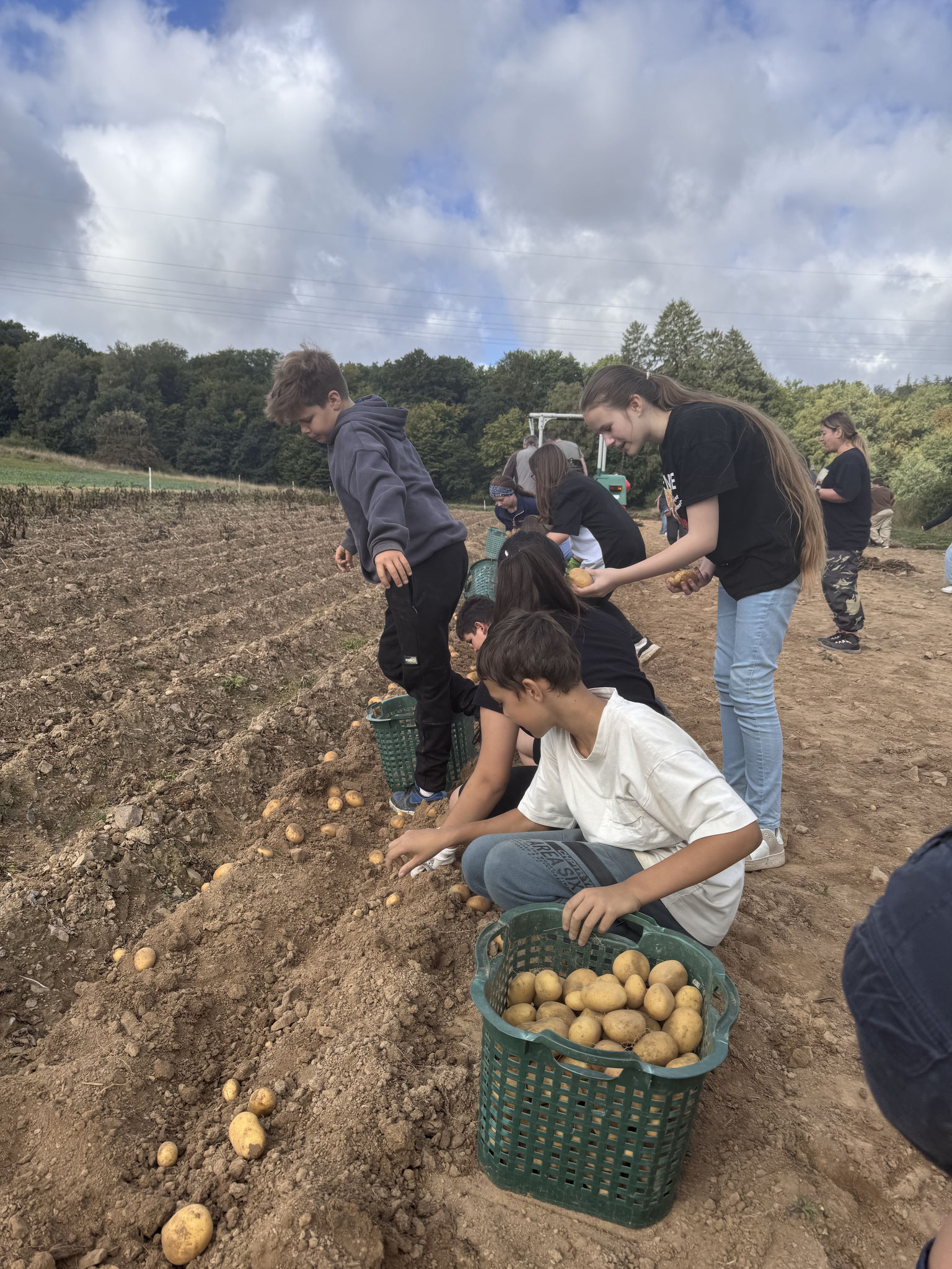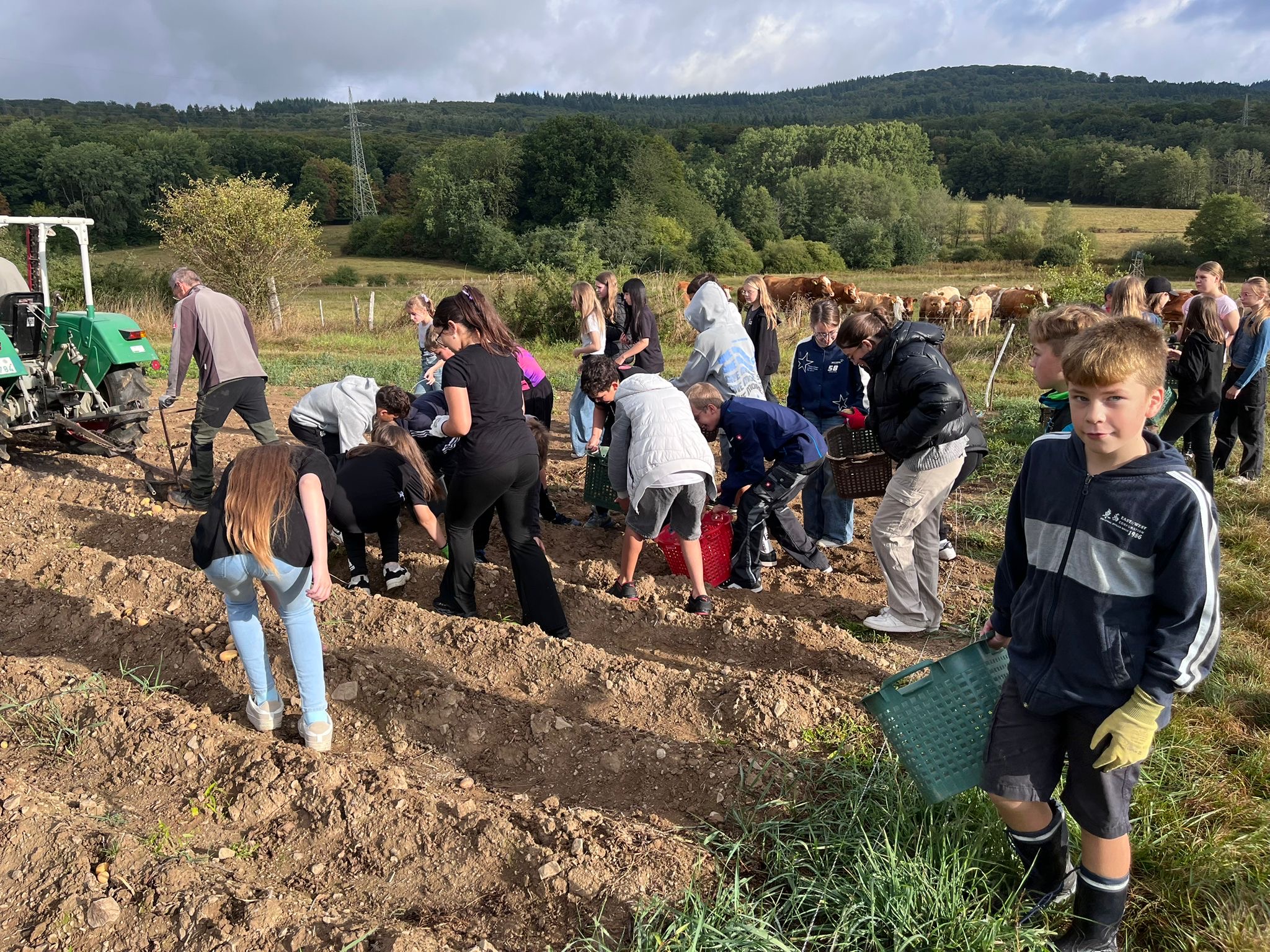 Die Jahrgangsstufe 6 hat am Freitag, den 05.09.2025, Familie Weiershausen bei der Kartoffelernte unterstützt. Neben dem Arbeiten haben die Schüler auch erfahren, wie viel Arbeit im Kartoffelanbau steckt. Einen Teil der Kartoffelernte erhalten die Klassen für ein Projekt in der Wanderwoche, zudem wird die Mensa der Goldbachschule beliefert.