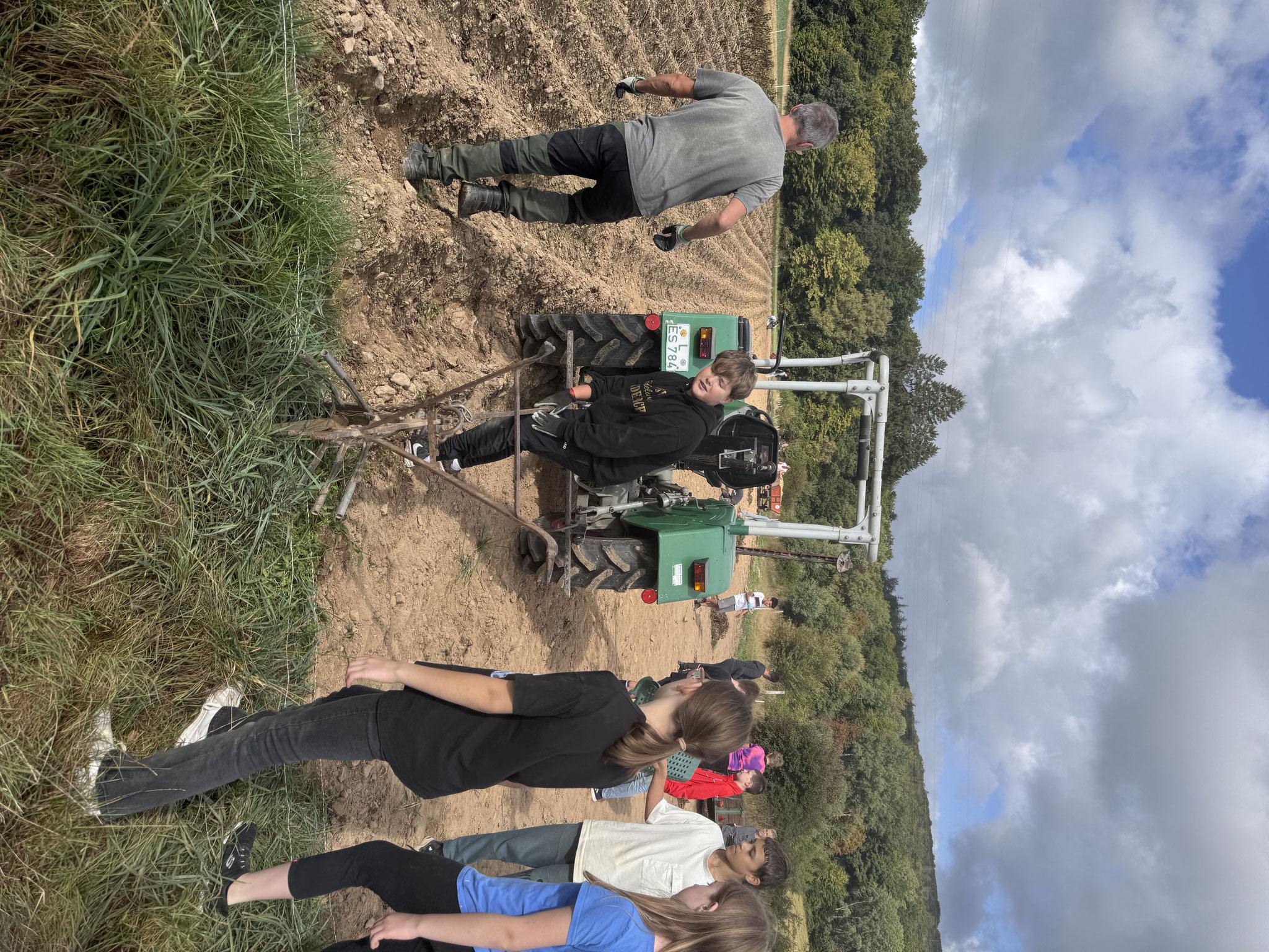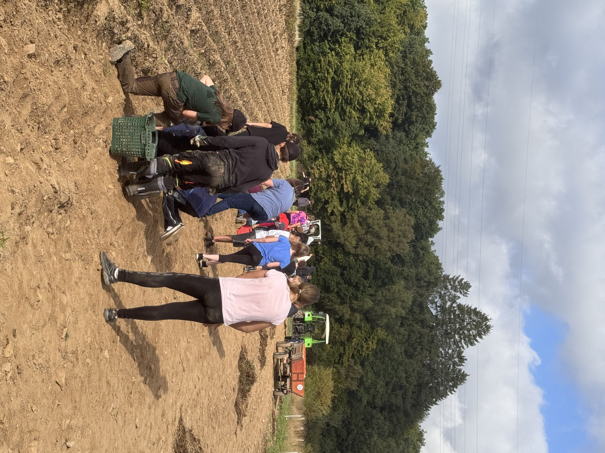 Die Jahrgangsstufe 6 hat am Freitag, den 05.09.2025, Familie Weiershausen bei der Kartoffelernte unterstützt. Neben dem Arbeiten haben die Schüler auch erfahren, wie viel Arbeit im Kartoffelanbau steckt. Einen Teil der Kartoffelernte erhalten die Klassen für ein Projekt in der Wanderwoche, zudem wird die Mensa der Goldbachschule beliefert.