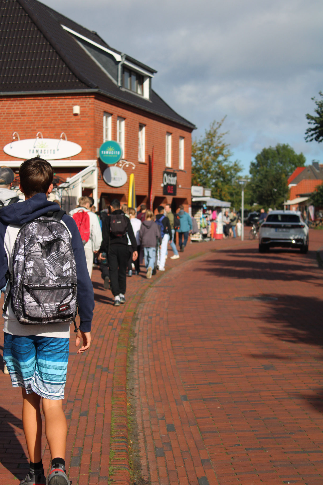 Die 8. Jahrgangsstufe ist in der diesjährigen Wanderwoche, die vom 22.-26.09.2025 stattfand, in St. Peter-Ording gewesen. Nach einer knapp 9-stündigen Busfahrt sind die 54 Schüler in der Unterkunft angekommen, konnten die Zimmer beziehen und das Gelände kennenlernen. Am darauffolgenden Tag wurde dann zunächst die Stadt erkundet, um im Anschluss ans Meer zu gehen. Dort haben die Schüler Volleyball und Fußball gespielt, Drachen steigen lassen, Sandburgen gebaut und gemeinsam gepicknickt. Einige haben zudem die Chance genutzt, in die Nordsee zu springen, die an diesem Tag eine Temperatur von 16°C hatte.
