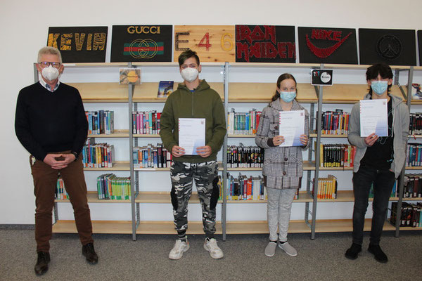 Obwohl die 8. Klassen aufgrund der Corona-Pandemie derzeit im Distanzunterricht beschult werden, stellten sich Elisa Göbel (8R1), Daniel Tremmel (8R2) und Tom Köhler (8H) der Herausforderung, auf die sie sich unter besonderen Bedingungen vorbereiten mussten. Bereits der erste Durchgang des Wettbewerbs wurde im Dezember im Rahmen des Wechselunterrichts durchgeführt. Heute erhielten Elisa, Daniel und Tom ebenfalls die Urkunden für die dort erbrachten Leistungen. Freuen durften sie sich auch über Amazon-Wertgutscheine, die sie von Schulleiter Heiko Bickel überreicht bekamen. Die gesamte Schulgemeinde gratuliert ganz herzlich.