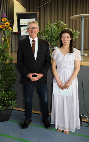 Ebenfalls verabschiedete Heiko Bickel im Rahmen der Feierlichkeiten den langjährigen Elternbeiratsvorsitzenden der Goldbachschule, Peter Thielmann. Der Schulleiter dankte dem Elternsprecher für seine engagierte Arbeit, auch im Namen der Elternschaft. Bereits seit 2015 hatte Peter Thielman das verantwortungsvolle Amt inne.