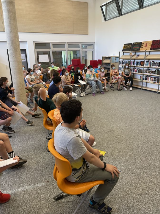 Es entwickelte sich ein spannender Wettkampf, die Schüler*innen machten es der Jury, die sich aus den Deutschlehrerinnen, Karin Michna-Karpf (Kl. 6R1), Ellen Arhelger-Müller (Kl. 6R2), Daniela Jost (Kl. 6H) und der bibliothekarischen Fachkraft Laura Rubin zusammensetzte, nicht einfach, eine Entscheidung zu treffen.