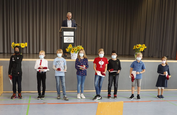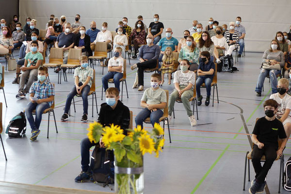 Am 31.08.2021 war es soweit: die neuen Fünftklässler wurden in der Goldbachschule begrüßt. Schulleiter Heiko Bickel und die 2. Konrektorin Stephanie Hillmann hießen die insgesamt 50 Schülerinnen und Schüler herzlich willkommen.