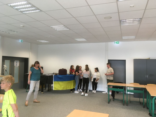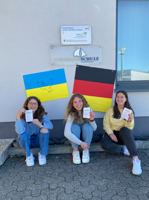 Außerdem haben sich einige Klassen mit ihren Klassenlehrkräften, in den letzten beiden Schulwochen, vor den Osterferien mit Projekten zur Unterstützung der Ukraine beschäftigt. Das dabei eingenommene Geld wird vor den Sommerferien den Menschen in der Ukraine gespendet.