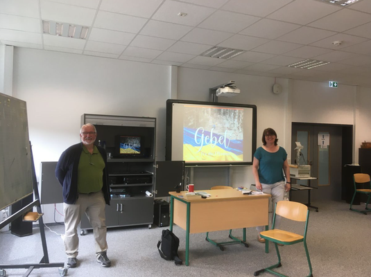 Im Rahmen des Religionsunterrichts und unseres Ukraine-Projekts an der Goldbachschule bekamen die Schüler der Klassen 6 durch Ute Hafer (Referentin für Frauen und Kinder) und Thomas Schewior (Missionsreferent), Mitarbeiter der MSOE, am 19. Mai 2022 aktuelle Einblicke in die z.T. dramatischen Situationen der Menschen in der vom Krieg gezeichneten Ukraine. Von der praktischen Unterstützung der 600 geflüchteten Menschen in Siegen und den Menschen in der Ukraine, aber auch von Gebetserhörungen, die die Menschen in diesen dramatischen Zeiten mitten in den Kriegswirren erleben dürfen, wurde berichtet. Unsere Schüler waren sehr beeindruckt, da sie das Thema „Gebet“ in den letzten Wochen im Religionsunterricht thematisiert hatten.