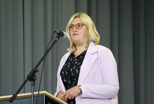 Heiko Bickel blickte noch einmal auf die Dienstzeit von Frau Michna-Karpf zurück. Besonders ihr große Engagement - über die Anforderungen einer Lehrkraft hinaus - haben das Profil der Goldbachschule nachhaltig geschärft und geprägt. Sei es als Initiatorin des Polenaustauschs, als Projektleiterin Umweltschule, als Waldpädagogin oder als Leiterin und Organisatorin der bis vor Corona regelmäßig stattfindenden Skifreizeiten: Karin Michna-Karpf war immer „on fire“ und hat sich stets für die Goldbachschule eingesetzt. Als Beauftragte für Mobbing- und Sexualprävention hatte die beliebte Deutsch- und Kunstlehrerin immer ein offenes Ohr für die großen und kleinen Probleme ihrer Schülerinnen und Schüler.