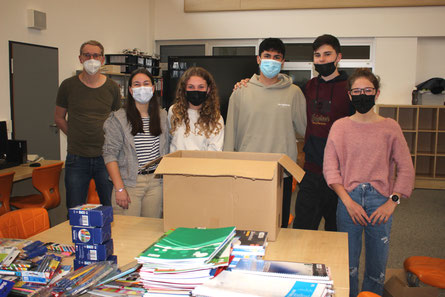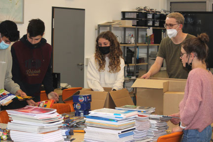 Vor den Osterferien plante die Schülervertretung eine Sammelaktion für Jugendliche in der Ukraine. Gespendet werden konnten Collegeblöcke, Bastelpapier, Zeichenblöcke, Bunt- und Filzstifte. Die geplante Aktion erfuhr bei der Schulgemeinde großen Zuspruch und zahlreiche Sachspenden wurden gesammelt. Die Schülervertretung hat die Spenden mit ihren Lehrkräften Frau Rothe und Herrn Habicht sortiert und in große Kisten verpackt. Diese wurden im Anschluss an die Ukrainehilfe Breitscheid weitergereicht, die die Spenden in die Ukraine transportieren. Die SV ist begeistert und freut sich über das Engagement der gesamten Schule.