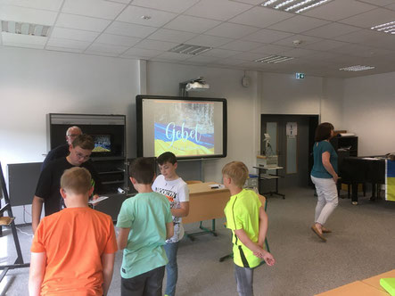 Leider musste auch in diesem Jahr auf das sonst übliche Programm bestehend aus vorab eingeübten Vorführungen verzichtet werden. Jedoch konnte Herr Kepper, der Pastor der FeG Frohnhausen, an beiden Einschulungsfeiern teilnehmen und den Mädchen und Jungen in einer Andacht den Beistand Gottes während ihrer Schulzeit zusprechen.