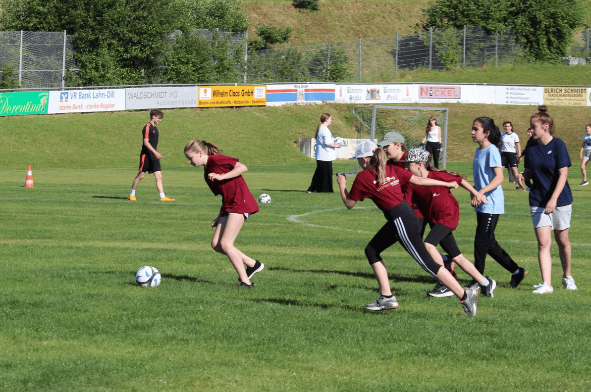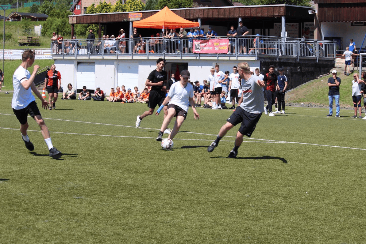 Bei strahlendem Sonnenschein begrüßte unser Schulleiter Heiko Bickel die 32 Jungen- und Mädchenmannschaften, die sich für das Turnier gemeldet hatten. Pünktlich um 8.30 wurde das erste Spiel durch den durch das gesamte Turnier souverän leitenden Moderator Marlon Gründer (Klasse 9H) angepfiffen. Fairness und Spaß an Gemeinschaft und Spiel von Seiten aller Schüler*innen sorgten für einen reibungslosen und verletzungsfreien Ablauf. Selbst Fußballunerfahrene setzten sich für ihre Mannschaft begeistert ein.