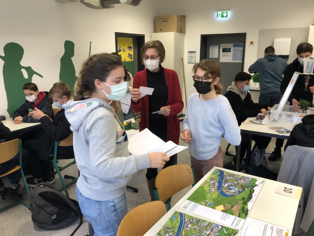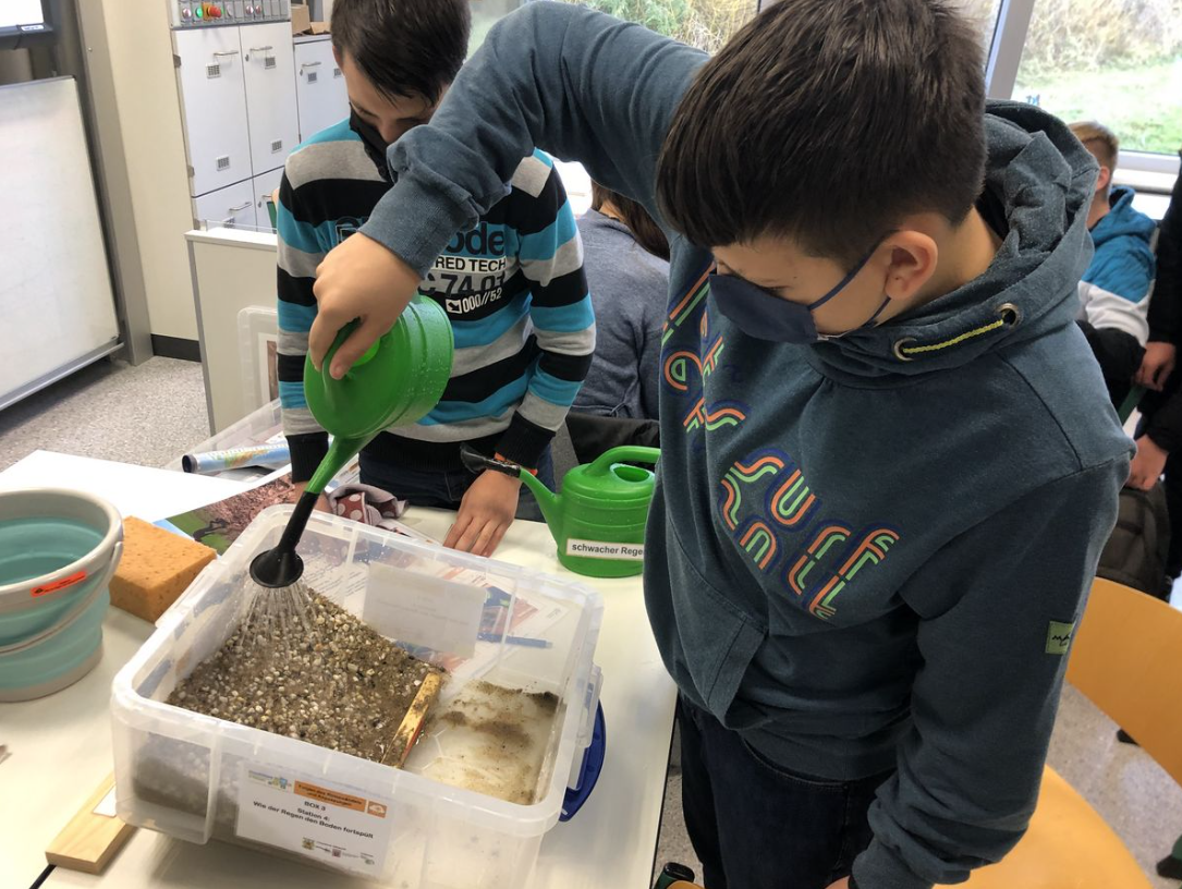 Die Umweltkordinatorinnen unserer als Umweltschule zertifizierten Goldbachschule, Daniela Jost und Silvia Schwarz-Meier, hatten dieses Projekt an die Schule geholt und an insgesamt vier Tagen mit den Klassen 9R1 und 9R2 durchgeführt. So sollen die Schülerinnen und Schüler die Möglichkeit bekommen, sich praxisorientiert mit den Themen Klimawandel, Klimawandelanpassung und Klimaschutz auseinanderzusetzen. Unter der Anleitung von Multiplikatorin Christine Grünbeck vom AZN-Natur-Erlebnishaus Heideberg e.V. wurden allerlei Informationen in vielen spannenden Experimenten praktisch dargestellt und thematisiert.