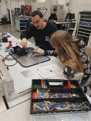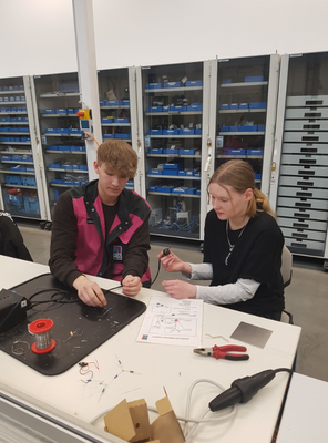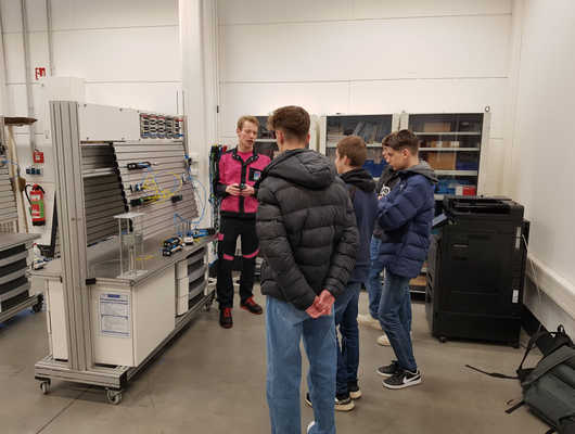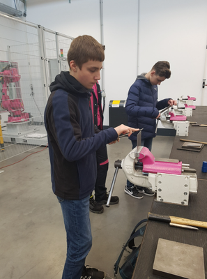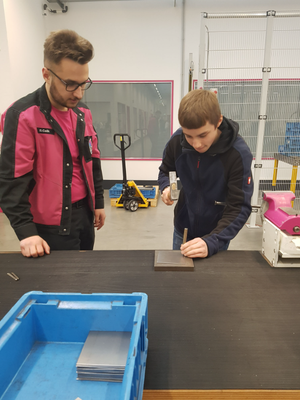 In Haiger erwartete die Schüler ein interessanter Vormittag im neuen Ausbildungszentrum der Firma Rittal. Zunächst wurde die Klasse vom Ausbilder Tobias Sohn in Empfang genommen, begrüßt und der Ablauf des Aufenthaltes erklärt. Anschließend wurden die Schüler in vier Gruppen eingeteilt und hatten die Möglichkeit an fünf unterschiedlichen Stationen Einblicke in mögliche Tätigkeiten verschiedenster Ausbildungsberufe zu bekommen. Die Stationen wurden von Mitarbeitern und Auszubildenden betreut. Hier konnten die Schüler Metallplatten entgraten, anreißen und körnen, 3D Modelle mit einem speziellen Computerprogramm erstellen, einfache Programmieraufgaben absolvieren, einen PC auseinanderbauen, Männchen aus Widerständen und LEDs löten und Mechanismen, die durch Druckluft gesteuert werden, erkunden. Alle diese Stationen standen in Zusammenhang mit den Ausbildungsberufen, die man im Rahmen einer dualen Berufsausbildung bei der Firma Rittal erlernen kann. Hierzu zählen zum Beispiel: Elektroniker Betriebstechnik, Fertigungsmechaniker, Industrieelektriker, Industriemechaniker, Maschinen- und Anlagenführer, Fachkraft für Lagerlogistik, um nur einige zu nennen. Nachdem alle Gruppen die Stationen durchlaufen hatten, gab es noch eine Führung durch das hochmoderne Logistikzentrum in Haiger. Hier gab es neben unzähligen umherfahrenden Gabelstaplern, und vollautomatisierten Regalen riesige Zahlenmengen zu bestaunen. Das Lager hat auf über 4000 Quadratmetern Fläche 22.500 Palettenplätze sowie weitere 24.000 Behälterplätze für Kleinteile. Jeden Tag treffen hier etwa 50 LKW mit ca. 30 geladenen Paletten ein und ebenso viele verlassen das Logistikzentrum wieder. Auch eine durch einen hohen Zaun abgeriegelte Verladezone gab es in dem Gebäude zu sehen. Dort werden alle Versandstücke, die mit dem Flugzeug versendet werden, auf LKW verladen und dann direkt in die Flugzeuge transportiert. Weitere Kontrollen am Flughafen werden so überflüssig und der Versand dadurch erheblich schneller. Mit unglaublich vielen und tollen Eindrücken endete der Tag für die Klasse um 13.00 Uhr.