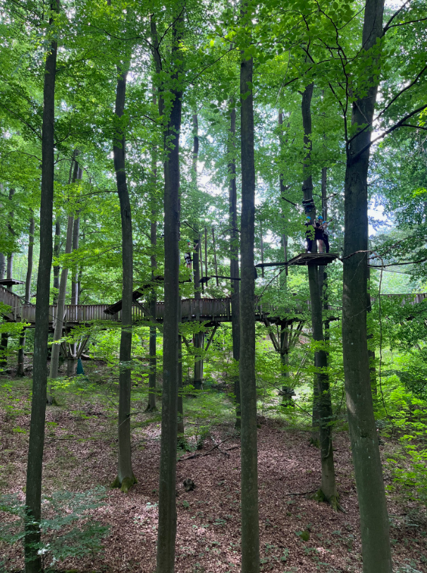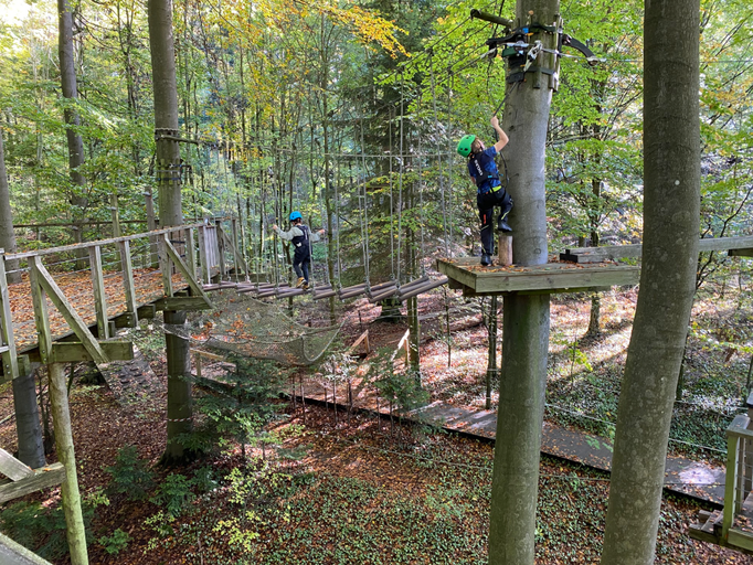 An diesem Tag wurden die beiden Klassen von ihren Klassenlehrkräften Nils Habicht (7H) und Fabian Kreck (5RH3) begleitet und zusätzlich durch Dennis Marchesini (UBUS-Kraft der GBS) tatkräftig unterstützt. Die Anreise erfolgte mit den öffentlichen Verkehrsmitteln und vor Ort konnten sich die 32 Schülerinnen und Schüler in unterschiedlich schweren Parcours ausprobieren. Durch das gegenseitige Motivieren und Helfen in Kleingruppen, haben sich alle Schülerinnen und Schüler den teils schwindelerregenden Höhen mit wackligen Hindernissen gestellt.