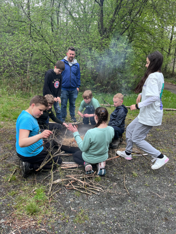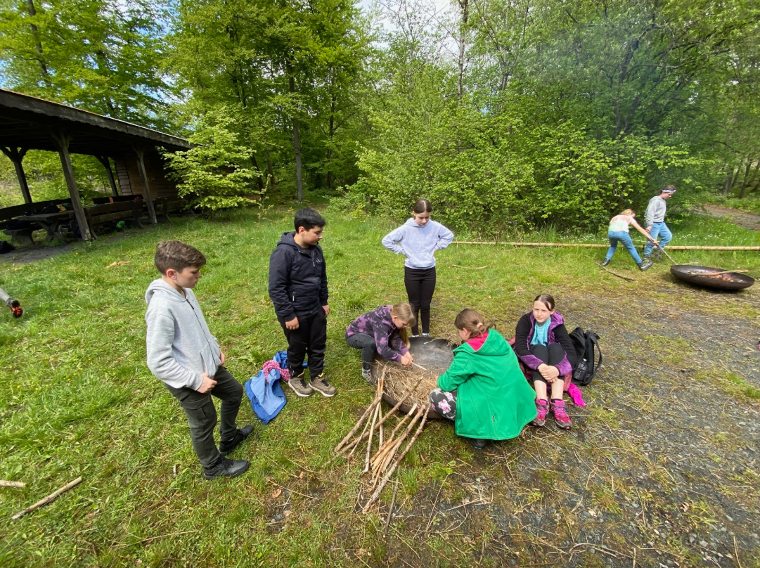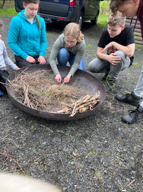 Die Klassen 5RH3 (Klassenlehrer Herr Kreck) und 6RH1 (Klassenlehrerin Frau Böhm) haben im Mai einen Vormittag im Wald verbracht und gelernt, wie ein Feuer ohne moderne Hilfsmittel entfacht werden kann.