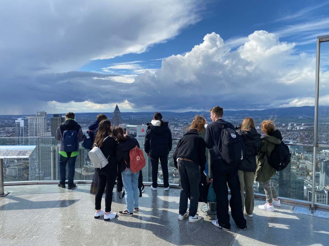 Neben den städtischen Entwicklungsprozessen sowie den sozioökonomischen Bevölkerungsstrukturen standen die wirtschaftliche Entwicklung und das touristische Potenzial der Stadt im Vordergrund der Exkursion. Dabei erkundeten die Schülerinnen und Schüler das Behördenzentrum, das Gutleutviertel, den Westhafen, den Hauptbahnhof, den Willy-Brandt-Platz, die Paulskirche, den Dom, den Römer, die Kleinmarkthalle, die Börse, das Bankenviertel und die Messe. Das Highlight der Exkursion war dann die rasante Fahrt mit dem Aufzug auf die Plattform des MainTowers. Von dort aus konnte nicht nur der Blick in den Taunus genossen werden, sondern auch die Entwicklung der Stadt Frankfurt mit den einzelnen Bebauungsfortschritten, geregelt durch die unterschiedlichen Hochhausbebauungspläne, entdeckt werden. Abgerundet wurde die Exkursion durch die im Vorfeld erarbeiteten Schüler-Kurzvorträge. Nach rund 16 Kilometern Fußweg und der Rückreise mit der Bahn, endete am Abend eine spannende und lehrreiche Exkursion am Dillenburger Bahnhof.