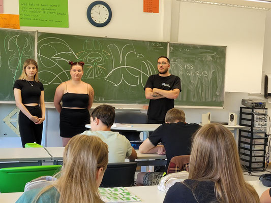 Sie haben sich freiwillig für den Verein zur Verfügung gestellt, sich zu Azubi-Guides „ausbilden“ lassen und besuchen zusammen mit Herrn Stamm unterschiedliche Schulklassen. Alle drei verbindet die Begeisterung für ihre jeweiligen Berufe und dies merkt bzw. hört man sehr deutlich.