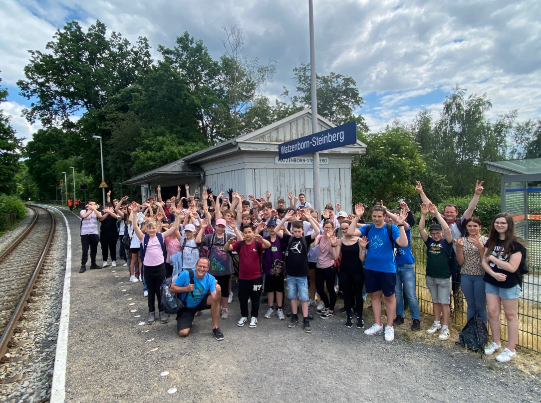 Gemeinsam mit ihren Klassenlehrkräften und der UBUS-Kraft Dennis Marchesini machten sich die rund 90 Schülerinnen und Schüler der Klassen 5RH3 (Herr Kreck), 7H (Herr Habicht), 7R1 (Herr Mankel), 9R2 (Frau Schleifenbaum) und die Klasse 10R1 (Frau Rothe) auf den Weg in den Kletterwald Gießen. Die An- und Abreise erfolgte mit öffentlichen Verkehrsmitteln. Bei herrlichem Wetter konnten die Lernenden innerhalb der dreistündigen Kletterzeit nicht nur ihre sportmotorischen Fähig- und Fertigkeiten verbessern, sondern auch unter dem Motto „Wir sind ein Team und unterstützen uns gegenseitig!“ das soziale Miteinander stärken.