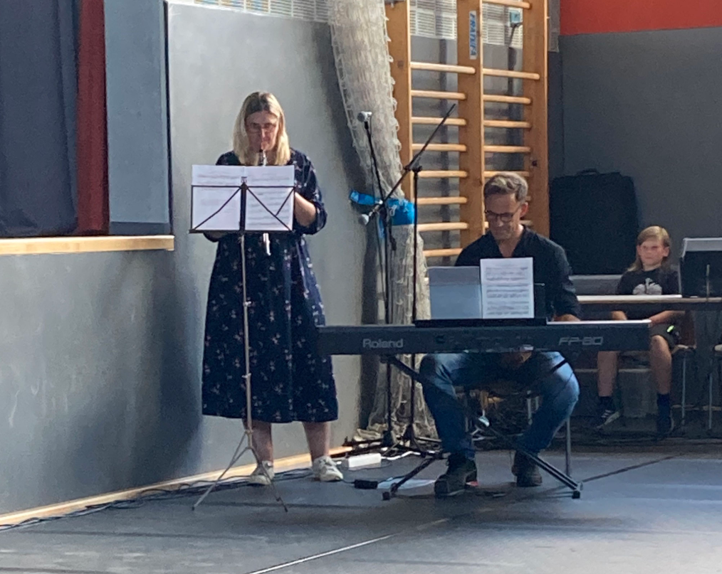In einem kleinen feierlichen Rahmen gestaltete zunächst Pastor Frank Kepper (FEG Frohnhausen) eine Andacht, in der er den neuen Fünftklässlern den Beistand und die Hilfe Gottes zusprach. Im Anschluss hielt der neue Schulleiter Andreas Acker eine Ansprache und sprach den neuen Schülerinnen und Schülern viel Mut, Neugier und Wissbegierigkeit zu und wünschte den Lernenden eine tolle und lehrreiche Schulzeit. Abgerundet wurde der feierliche Rahmen durch selbstgestaltete Beiträge der 6. Klassen sowie musikalischen Stücken mit dem Klavier und der Blockflöte. Daran anschließend wurden die Schülerinnen und Schüler ihren neuen Klassen und Klassenlehrern zugeordnet. Dabei erhielten sie ein Willkommensgeschenk. Neben einem T-Shirt mit dem Logo der Goldbachschule, welches von dem Förderverein der Goldbachschule gestiftet wurde, gab es noch eine große „Einschulungs-Bretzel“.