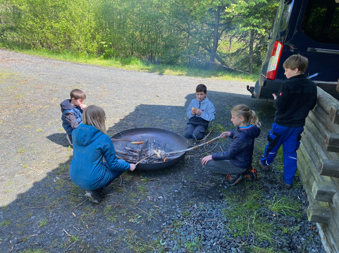 Alle Gruppen schafften es schließlich und konnten ihre Würstchen über dem selbst entfachten Feuer grillen.